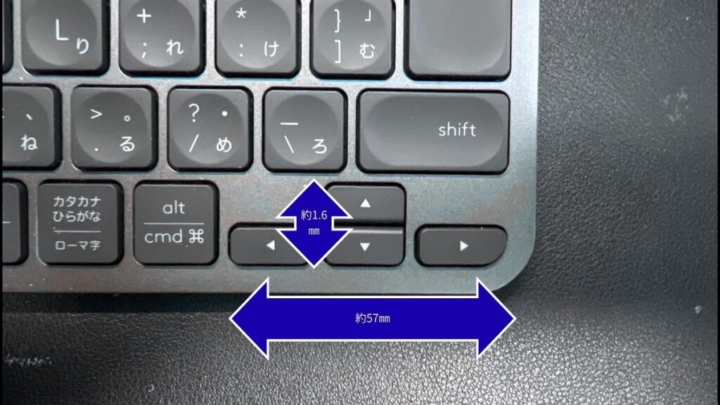 コンパクト化の代償として、矢印キーが通常サイズより小さくなっています。冒頭の失敗談でも触れましたが、Excelやスプレッドシートでセル移動を多用する方は、最初の1〜2週間でストレスを感じる可能性が高いです。