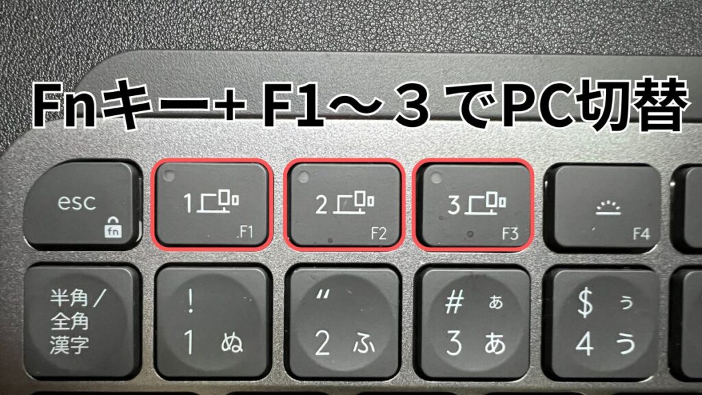 MX Keys Miniには「Easy-Switch」キーがF1〜F3に割り当てられており、ワンタッチで最大3台のデバイスを瞬時に切り替えられます。