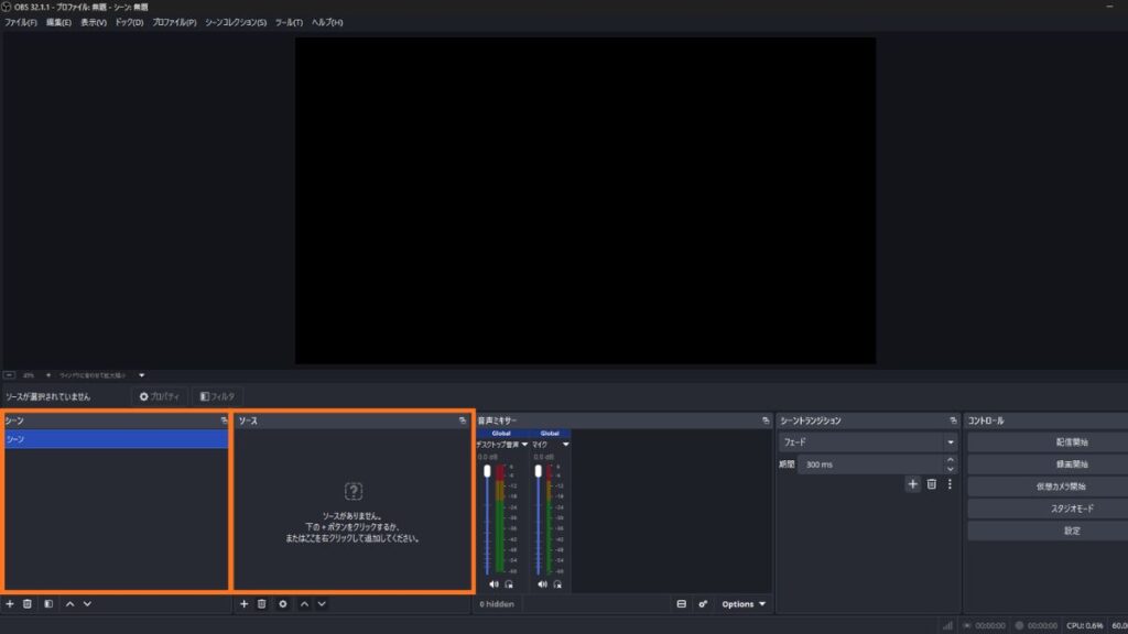 この記事の操作手順・画面説明はOBS Studio 32.1.1時点の画面を基準にしています。それ以前のバージョンではUIや操作方法が異なる場合があります。